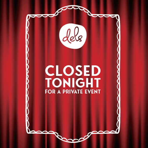 Saturday December 13th, Del's will be closed for a private event.